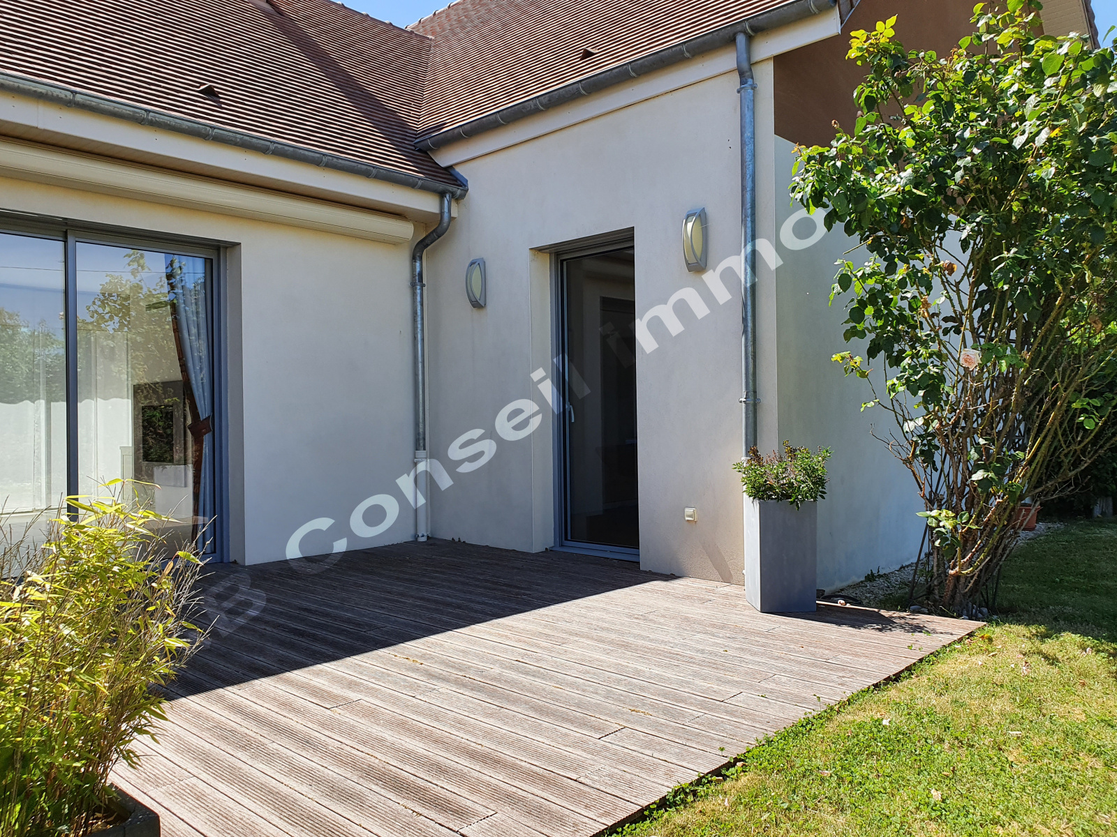 Double vitrage aluminium, aspiration centralisée, isolation renforcée, normes PMR, chauffage par géothermie, volets roulants électriques, double terrasse, abris de jardin: belles prestations pour cette maison à l'état irréprochable, facile à vivre et très bien pensée.